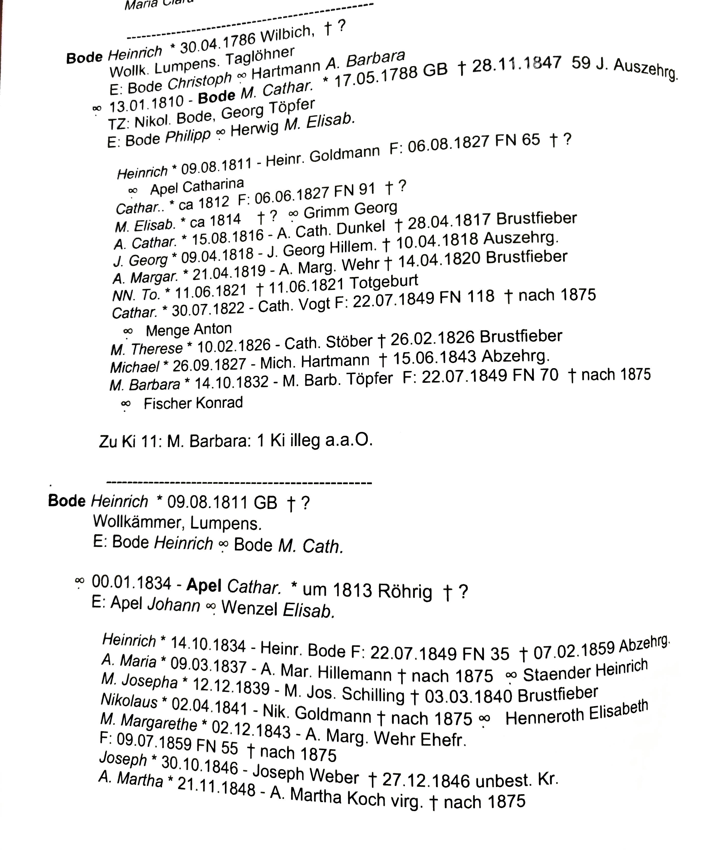 Die Spuren führen schon weiter nach Wilbich (gibts auch ein OFB) und nach Röhrig (schau mal https://familienbuch-eichsfeld.de/).
