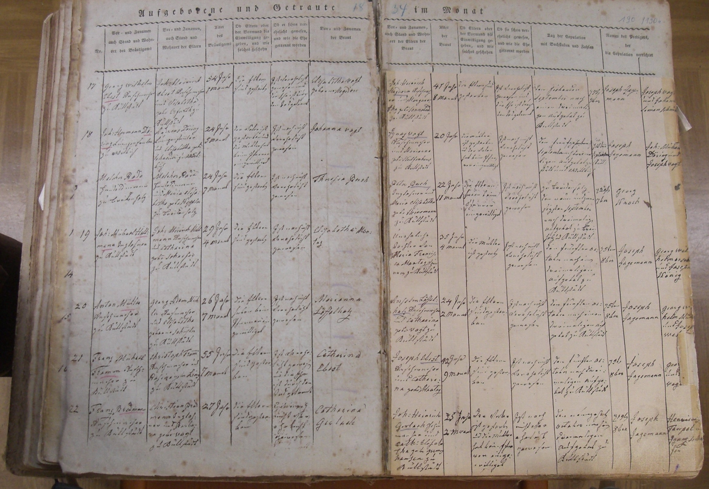 Heirat von Joh. Hermann Döring mit Johanna Vogt war am 15.09.1834 in Küllstedt. Als Eltern genannt Ignaz Vogt, Raschmacher und Marianne geb. Hülfenhaus zu Küllstedt.