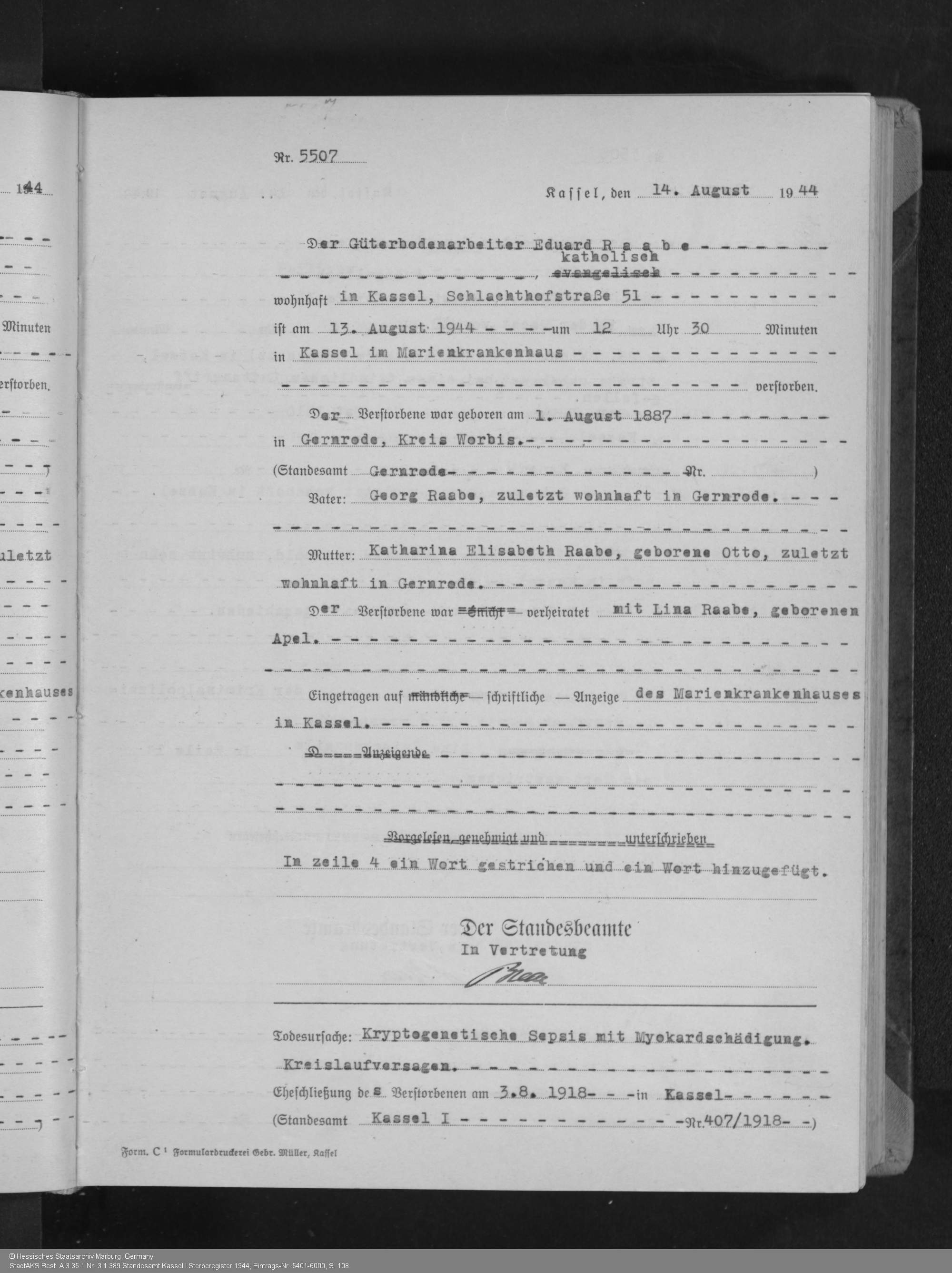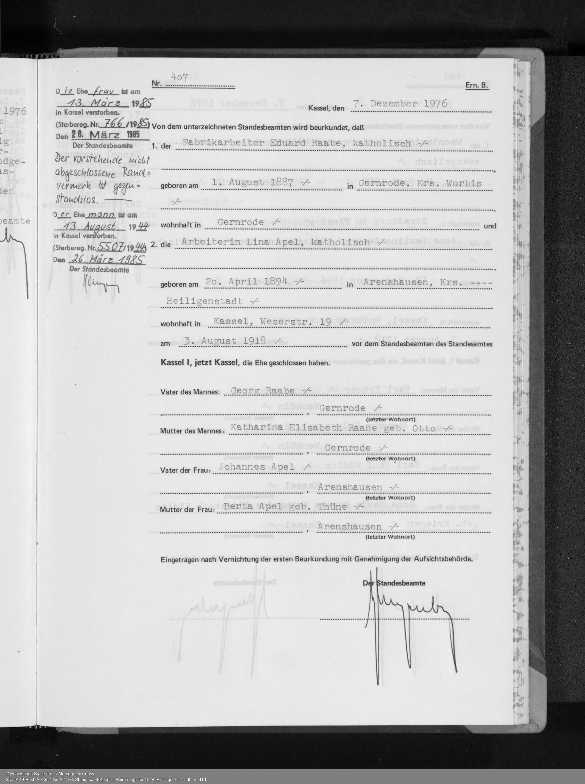 ein paar Ergänzungen. Hier findet mal viel zum Standesamt Kassel: