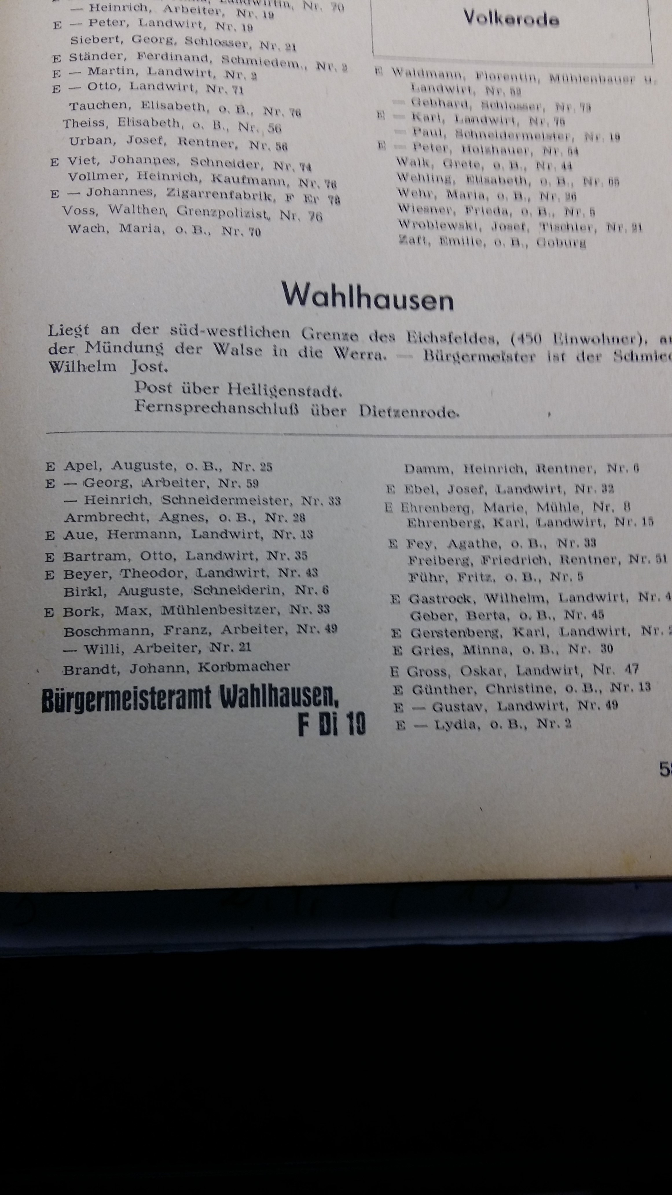 ich habe das Adressbuch Worbis von 1948, habe die 3 Seiten Wahlhausen auch abfotografiert,