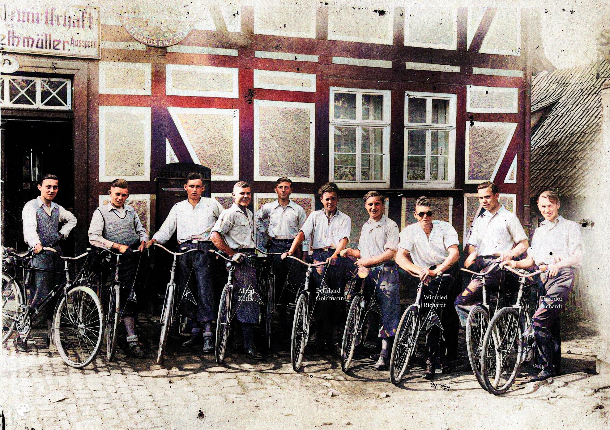 bei Facebook wird ja vermutet, dass es die Riedelsburg in Uder sein könnte. Das Gebäude sieht nur so ähnlich aus. Die Balkenanordnung passt aber nicht, auch das nebenstehende Gebäude würde nicht passen. Um 1935 war auch der Besitzer kein Riethmüller, sondern ein Hünermund. Der Vorbesitzer war ein Herr Scharfe. Ich denke diese Gaststätte steht eher in Eurem Bereich, auf dem runden Schild kann man auch den Schriftzug Mühlhausen erkennen.