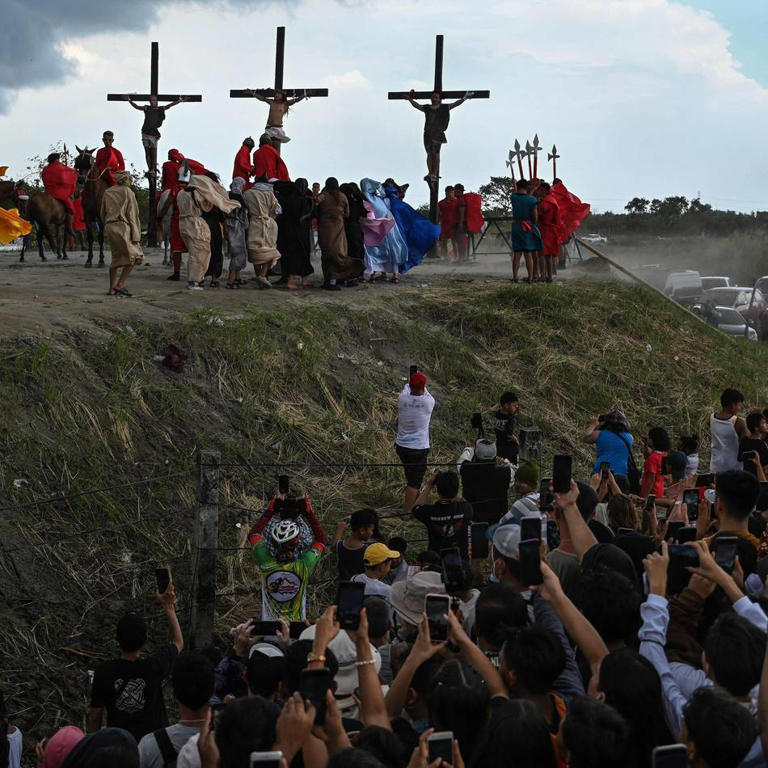 In einem extremen Akt des Glaubens haben sich am Karfreitag auf den Philippinen wieder mehr als ein Dutzend Menschen an Kreuze nageln lassen. Mit dem Ritual und anderen Selbstkasteiungen erinnern Katholiken in dem südostasiatischen Inselstaat traditionell an das Leiden und den Tod Christi. Viele weitere Teilnehmer schlugen sich mit Peitschen auf den Rücken, bis dieser blutig war. Tausende nahmen an Prozessionen und Messen in überfüllten Kirchen teil. Die Karfreitagsrituale sind traditionell der Höhepunkt der Feierlichkeiten der Osterwoche in dem überwiegend katholischen Land.